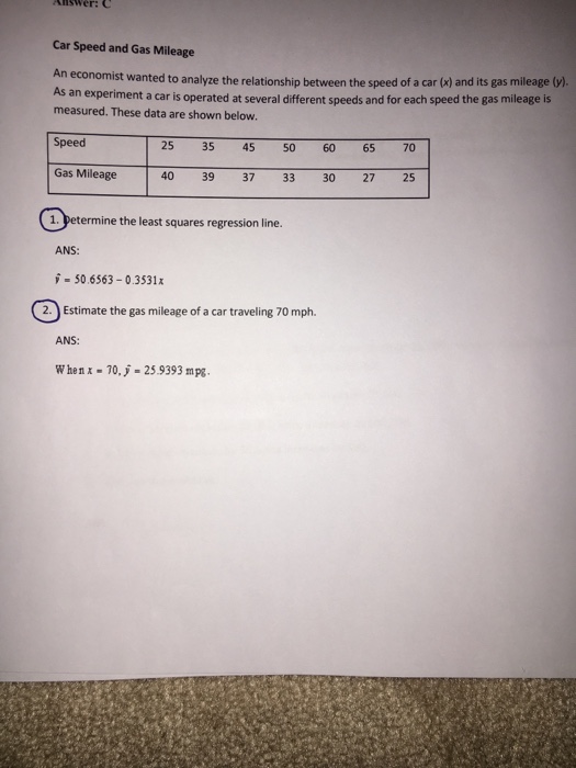 The gas mileage of an automobile first increases and then decreases as the speed increases. Suppose that this relationship is very regular, as shown by the following data on speed (miles per hour) and mileage (miles per gallon): ... Fetch Here